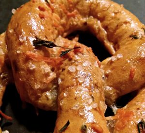 Chewy, salty, herby pretzels. Boiled first, then baked, these are as authentic as it gets, except, of course, they have no gluten and no grain. These will remind you of state fairs, ball games, & Coney Island all in one! (BTW, the Parmesan is optional if you avoid cow stuff!)
